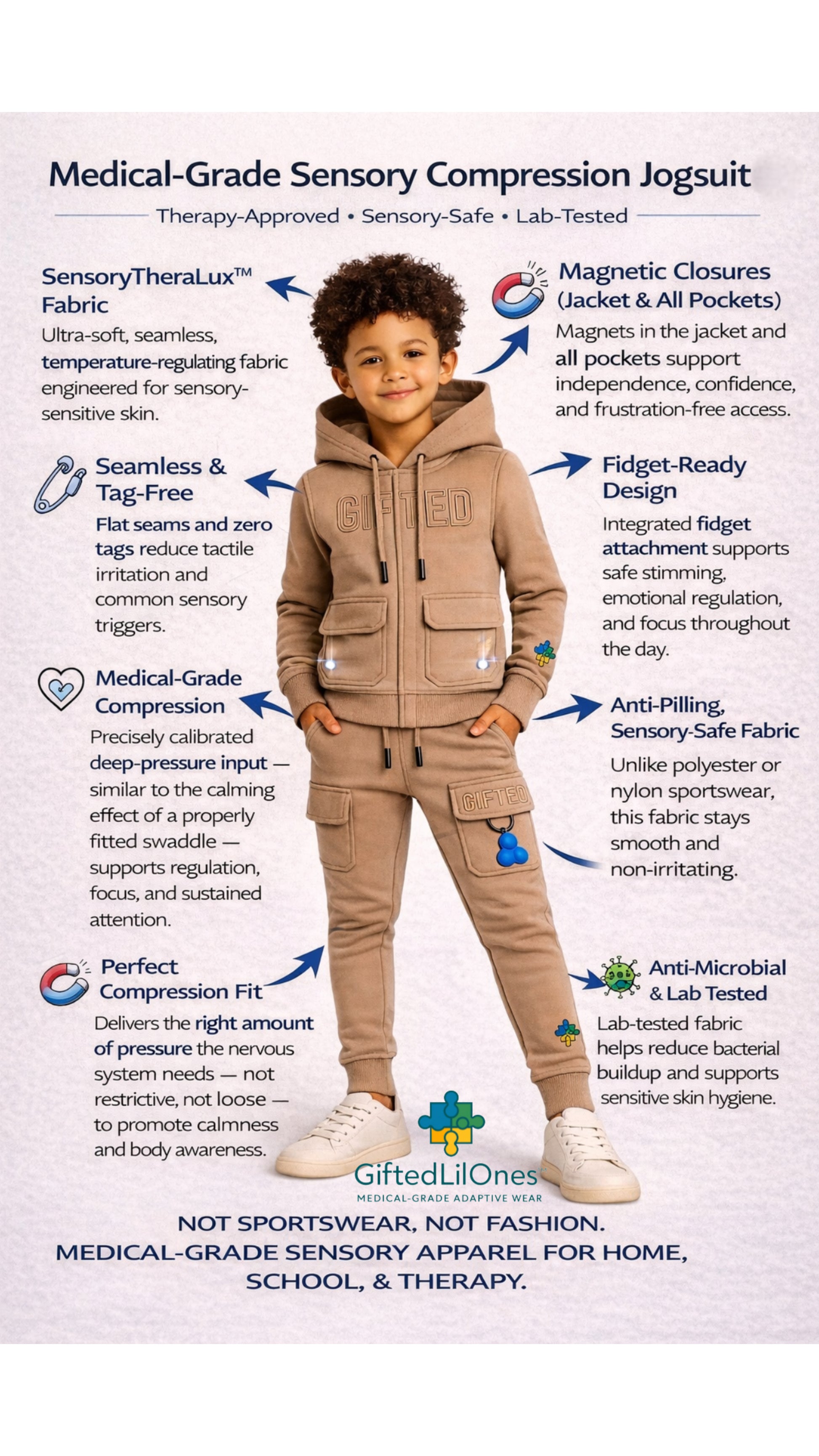 GiftedLilOnes™ SensoryTheraLux™ fabric is lab tested to support safe, comfortable wear for children with sensory sensitivities.
